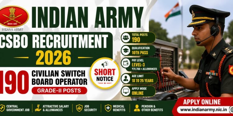 Indian Army CSBO Recruitment 2026 (Short Notice) – Apply Online for 190 Civilian Switch Board Operator Posts